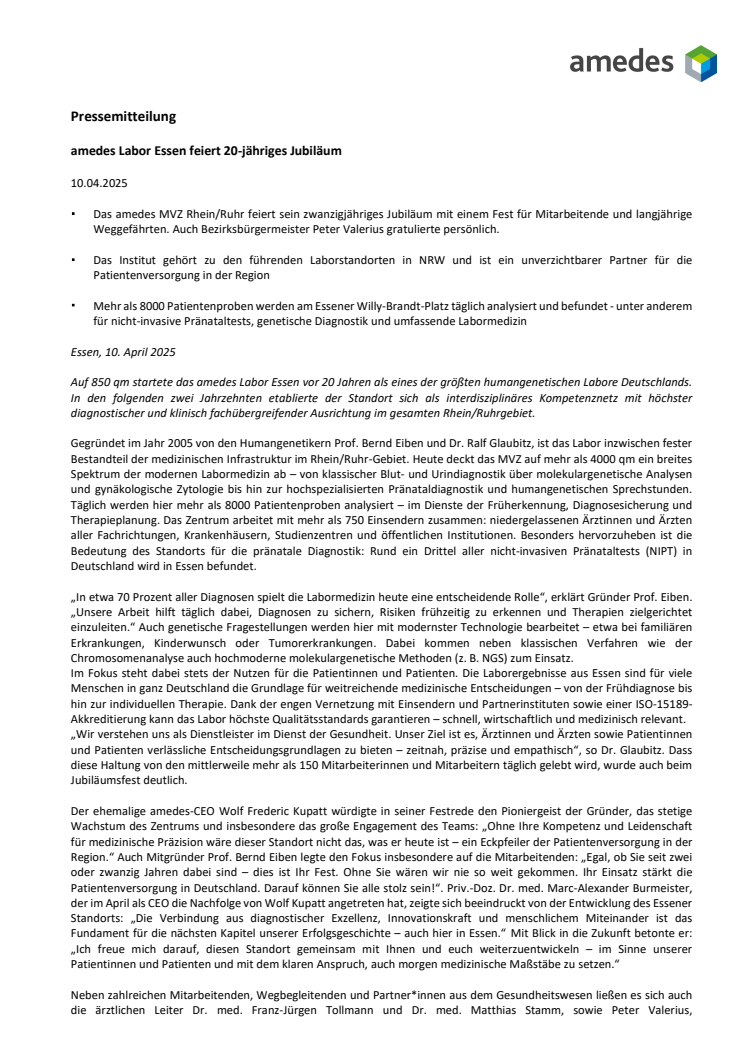 PM_amedes MVZ für Labormedizin und Klinische Genetik Rhein-Ruhr wird 20 Jahre alt.pdf